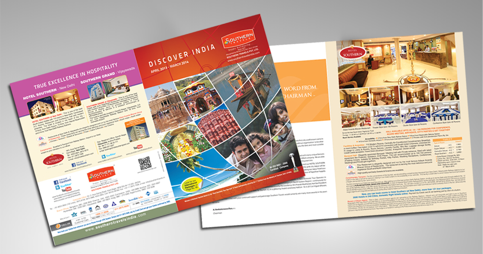 At IDEAL DESIGNS, our relationship with Southern Travels is not just professional – it’s personal. We’ve been walking this journey with them for over 20 years, shaping their brand identity at every step. From their Travel Logo Design India to Travel Brochure Design Hyderabad, Tourism Flyer Design, Leaflet Design Services, Hotel Branding Solutions, Promotional Voucher Design India, and countless marketing materials, we’ve had the privilege of telling their story visually – making sure their brand feels as welcoming and trustworthy as the journeys they offer.